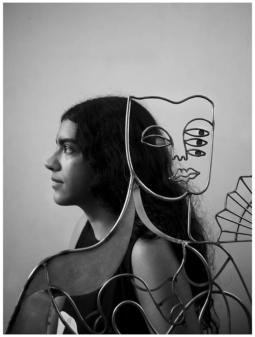 • Tarini Sethi works across mediums, with rich drawing and painting practices that she then translates into large metal works. Across her practices, she creates her own language of futurism, imagining the body as a site of infinite possibility.
