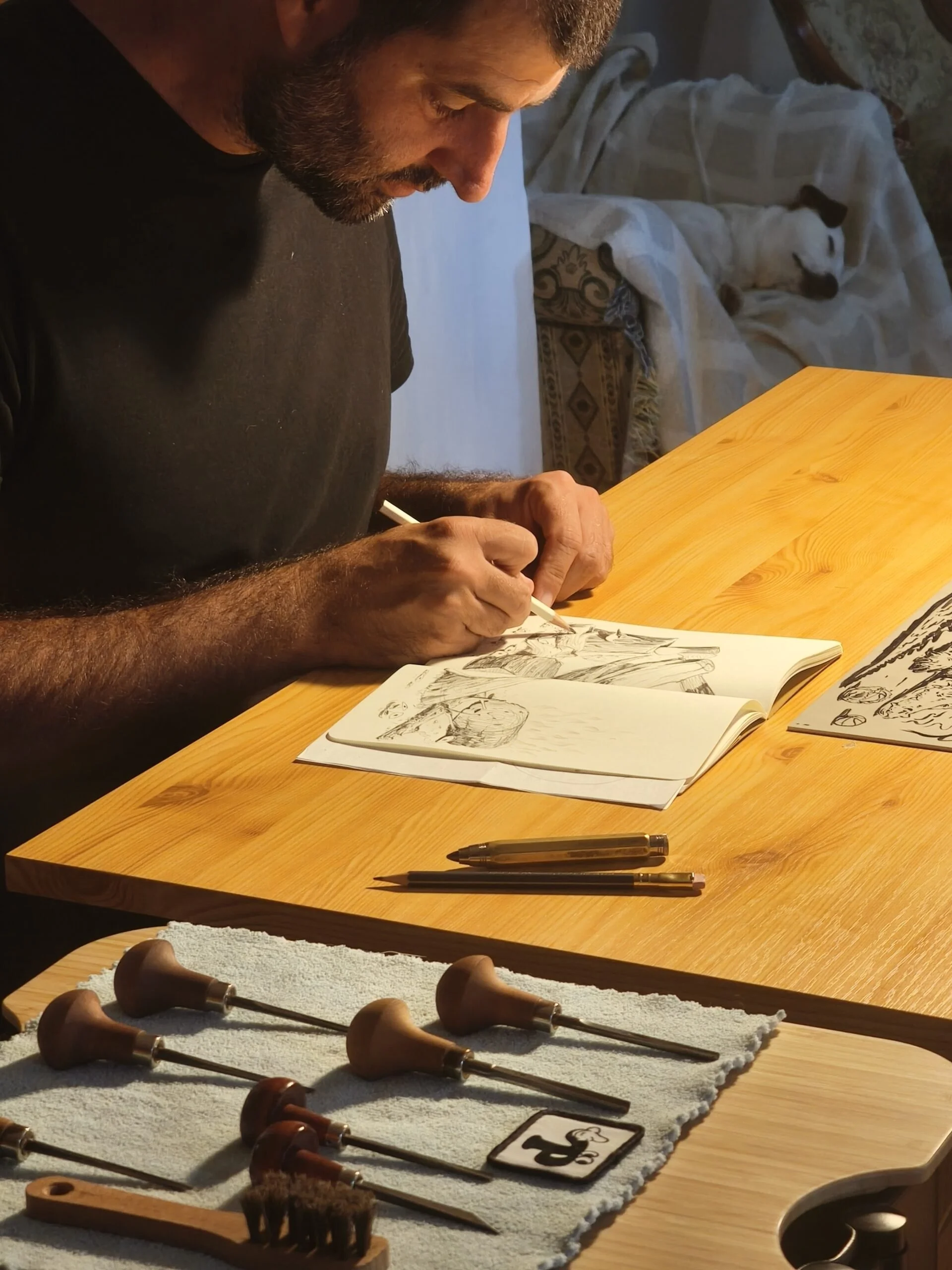 • Ed Dingli is a visual artist whose work explores themes of identity & place, the quirks of humanity and the intricacies of nature. Blending storytelling with a graphic, expressive style, he experiments with both analogue and digital media, including painting, printmaking, and large-scale murals.